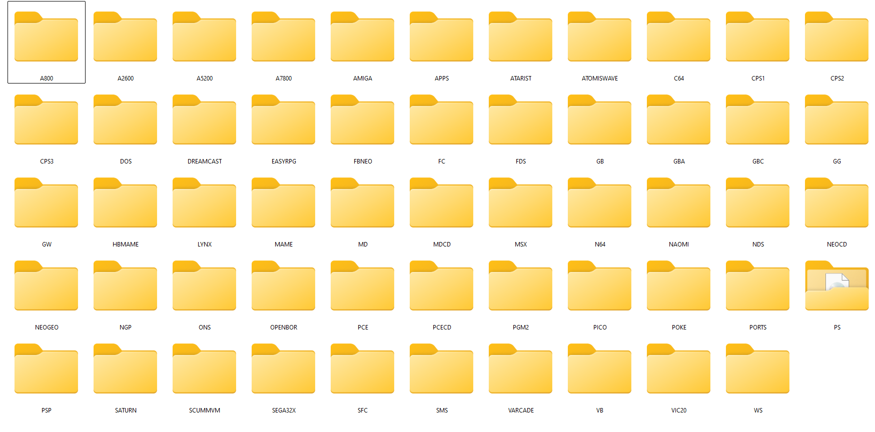 🔹 Ejemplo: Si quieres agregar juegos de PlayStation 1, entra en la carpeta "PS".